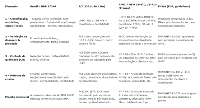 A série brasileira se inspira nas normas europeias, especialmente no Eurocode, e mantém convergência com referências internacionais, como o ACI 239, os guias AFGC (França) e o FHWA (EUA), segundo Barbosa.