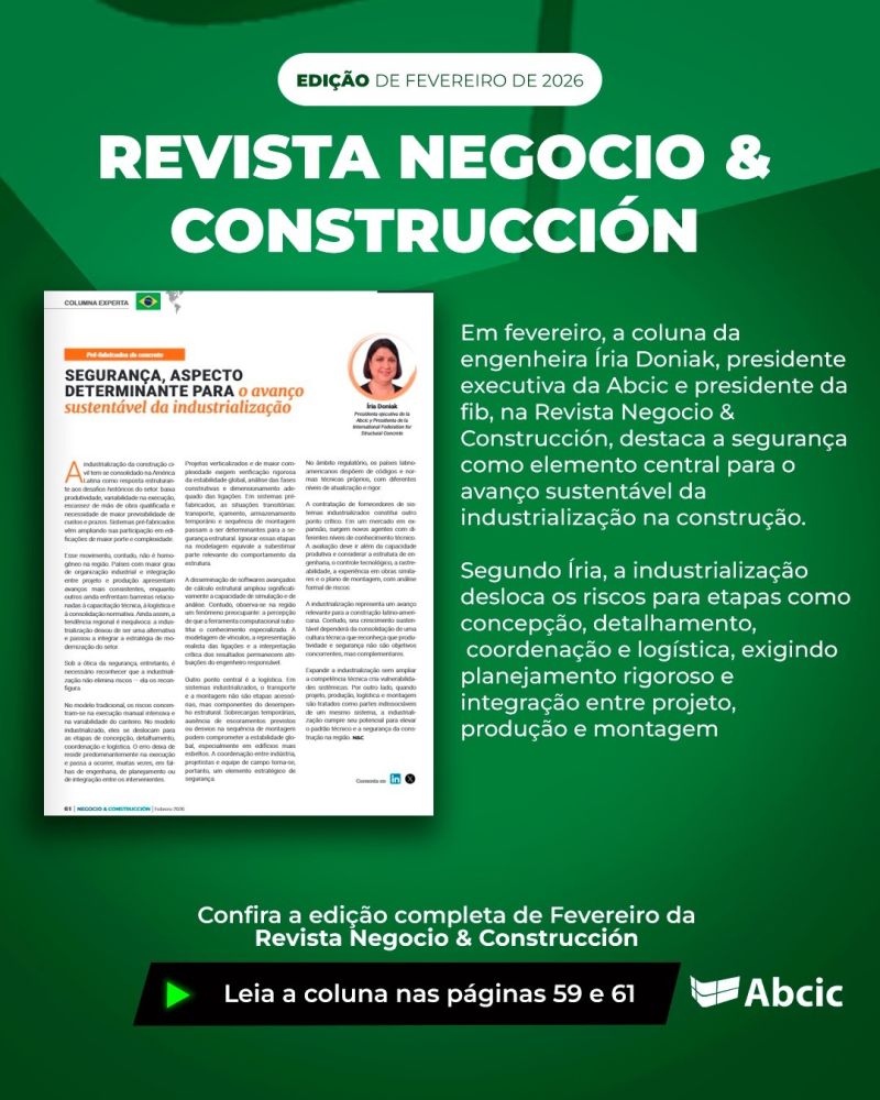 A engenheira Íria Doniak, presidente executiva da Abcic e presidente da fib, traz em sua coluna na Revista Negócio & Construção e avalia a segurança como fator determinante para o avanço sustentável da industrialização.