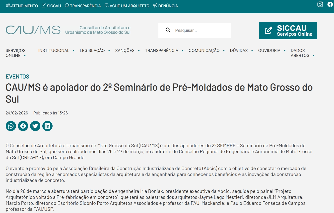 URL: https://caubr.gov.br/cau-ms-apoia-2o-seminario-de-pre-moldados-de-mato-grosso-do-sul